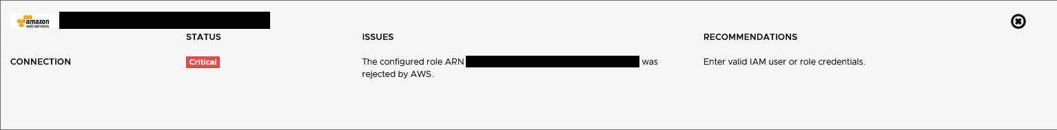 Using the information in the detailed message(s) after clicking on the status as described above, ensure your account is configured correctly with the appropriate permissions.