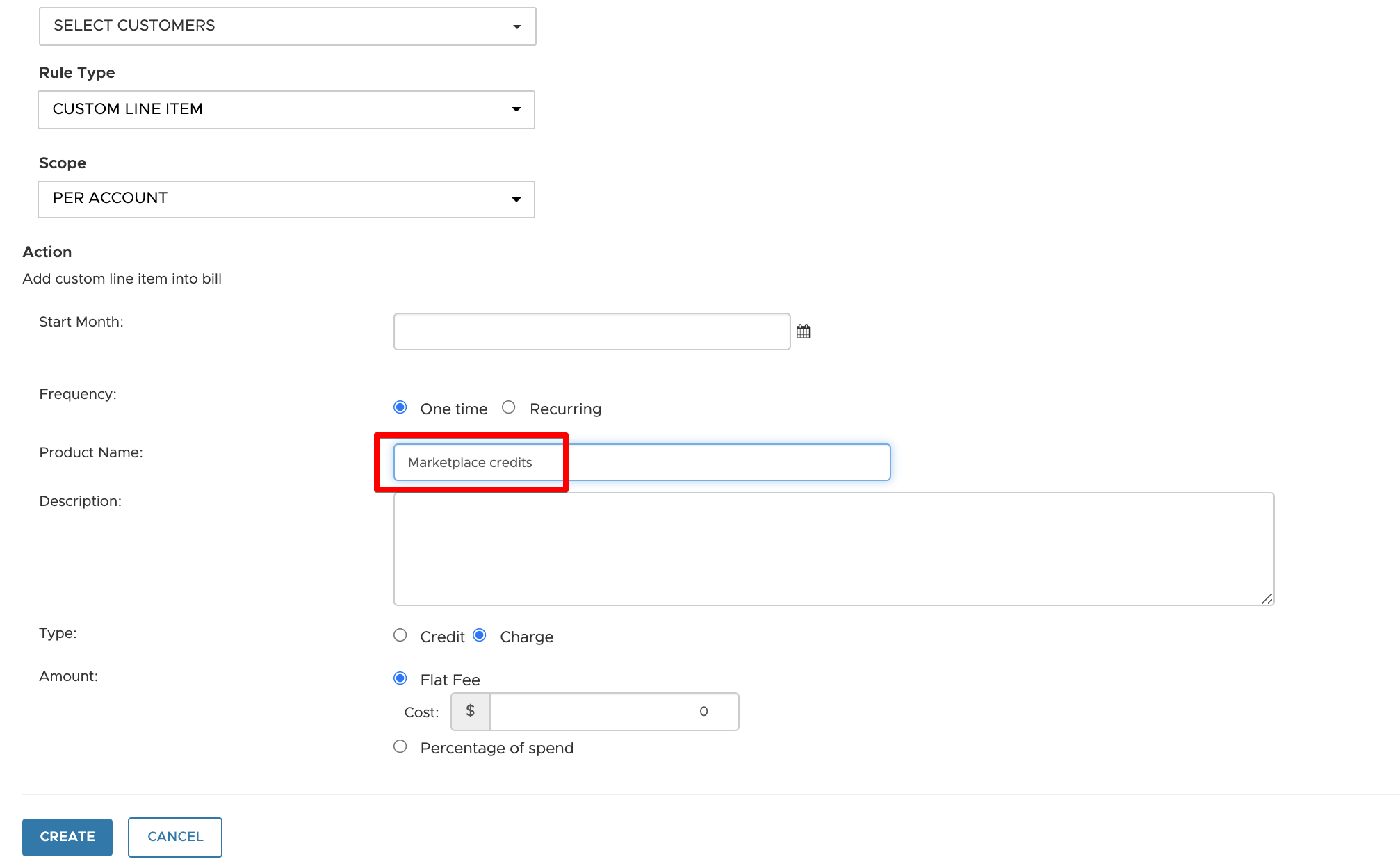 This happens when the product name entered in billing rule does not match with any existing services.