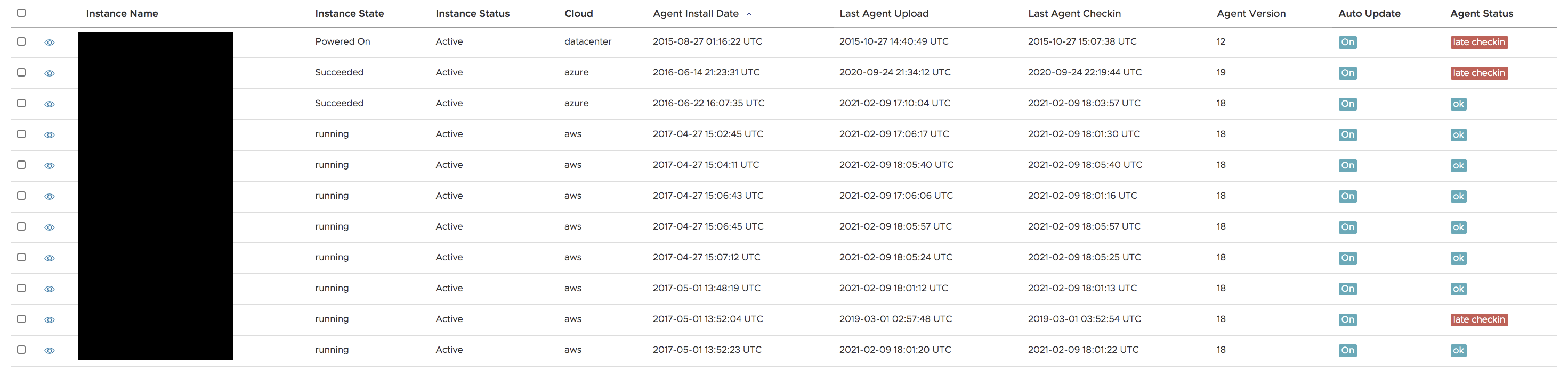 To get a view of all agents and their status, you can use the following report link: https://apps.cloudhealthtech.com/agent_stats