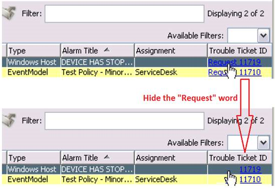 How to remove the word "Request" from the Trouble Ticket column in CA Spectrum OneClick with the CA Service Desk Integration enabled so that only the Trouble Ticket number is displayed.