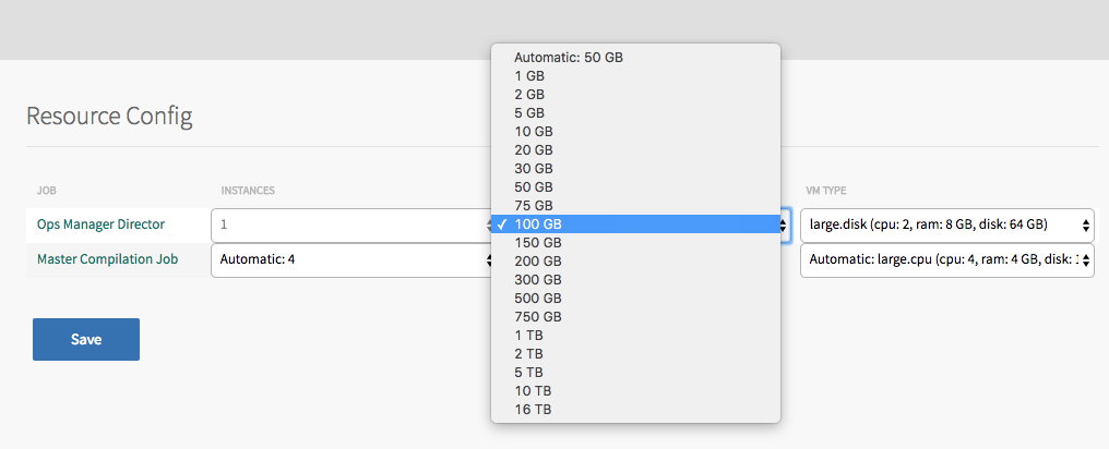 1. Go to "Operations Manager Director Tile and then to Resource Config". See below: