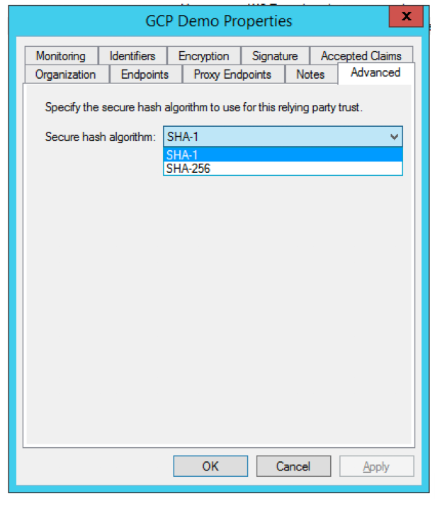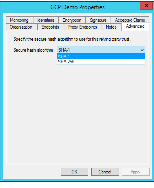 - ADFS appears to accept SHA256 signed authentication requests when SHA1 is configured.