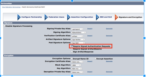 - For CA Siteminder, you can uncheck “Required Signed Authentication Requests” for the applicable partnership.