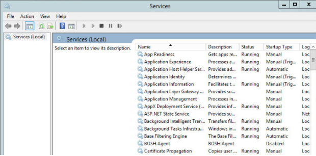 Step 6. On the Services window, you can see that the BOSH Agent is set to Disabled by default.