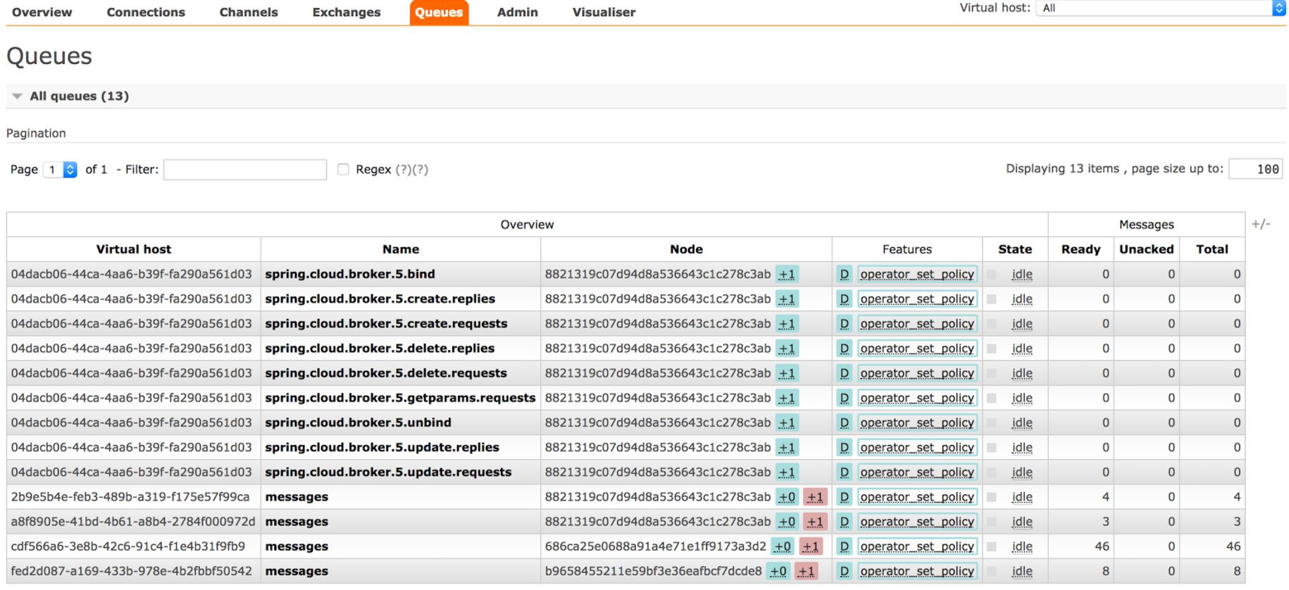 You should now see all the data as the original. The example scenario all the queues are active including unconsumed messages in the queues and the application, which is being used for testing so we can confirm that apps were able to consume the messages from its queue.