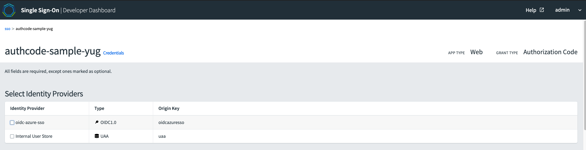 Select Identity Providers section shows internal as well as external Identity Providers that are configured to use but none of them are selected.