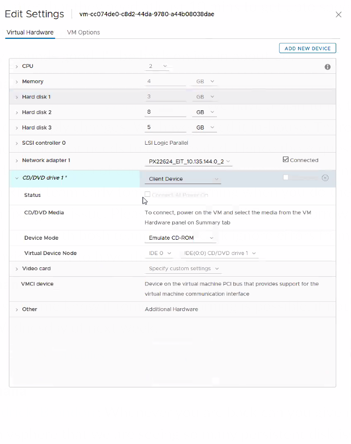 In some cases, attempting to move a server to maintenance mode fails if the CD-ROM has an env.iso file attached. To get around this you need to manually detach the env.iso file. However, this workaround is temporary and this issue will reoccur the next time BOSH tries to rebuild the VMs during an upgrade.