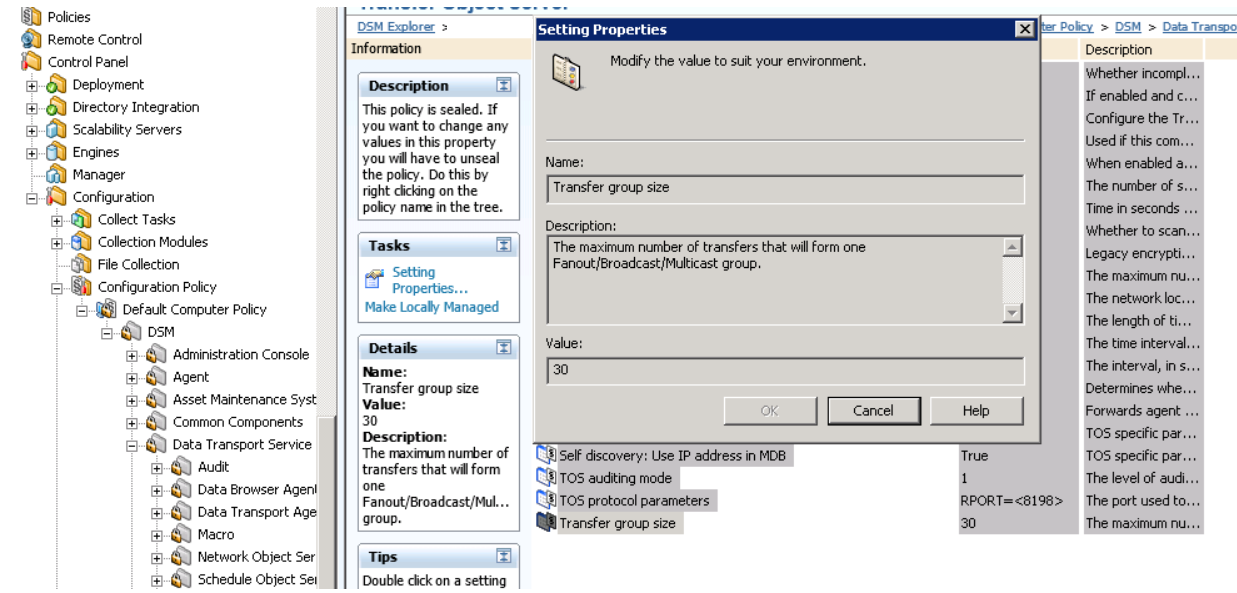 1-When CCS and DTSBPV have been installed, this allows you to configure the MaxParcelSize dependent of the bandwidth/load of the related communication link. Please see the ITCM_NSM_Admin_ENU.pdf and ITCM_DTS_Admin_ENU.pdf in the \DOC\ENU folder on the media for details.