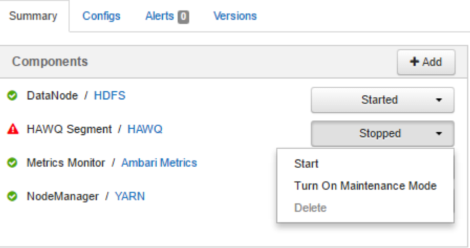 Ambari 2.4 UI presents the option to delete HAWQ services on segments. While deleting a HAWQ segment from a host, sometimes the DELETE option is grayed out and disabled as shown in the image below.