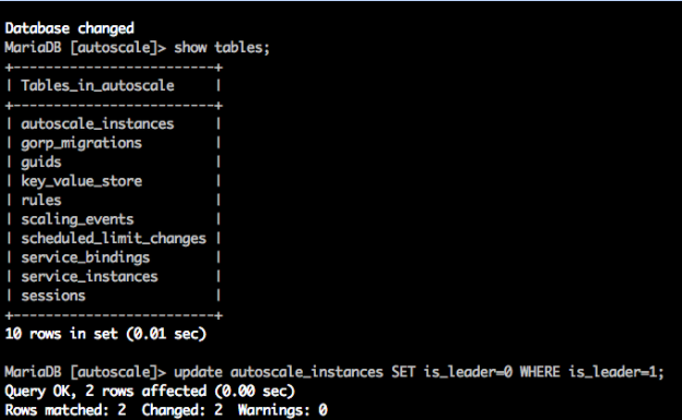 1. Update autoscale_instances SET is_leader=0 WHERE is_leader=1;