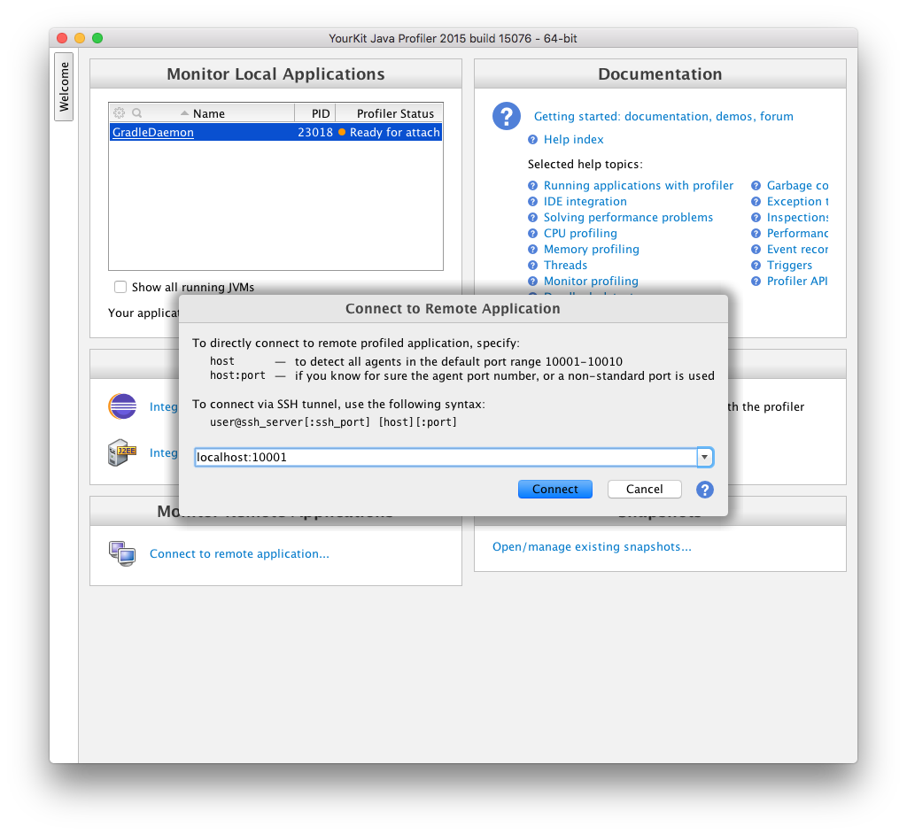 2. Set up SSH tunnel for YourKit Java Profiler: