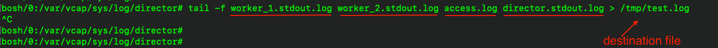 bosh/0:/var/vcap/sys/log/director# cat /tmp/test.log ==> worker_1.stdout.log <== before or while processing the request.: (conn: 3560) SELECT NULL D, [2023-11-24T20:53:28.940809 #30096] [] DEBUG -- Director: (0.000235s) (conn: 3780) SET standard_conforming_strings = ON D, [2023-11-24T20:53:28.941054 #30096] [] DEBUG -- Director: (0.000129s) (conn: 3780) SET client_min_messages = 'WARNING' D, [2023-11-24T20:53:28.941210 #30096] [] DEBUG -- Director: (0.000108s) (conn: 3780) SET DateStyle = 'ISO' ==> worker_2.stdout.log <== before or while processing the request.: (conn: 4060) SELECT NULL D, [2023-11-24T20:53:30.079542 #30110] [] DEBUG -- Director: (0.000355s) (conn: 4100) SET standard_conforming_strings = ON D, [2023-11-24T20:53:30.079952 #30110] [] DEBUG -- Director: (0.000259s) (conn: 4100) SET client_min_messages = 'WARNING' D, [2023-11-24T20:53:30.080185 #30110] [] DEBUG -- Director: (0.000162s) (conn: 4100) SET DateStyle = 'ISO' ==> access.log <== 10.225.31.129 - - [24/Nov/2023:20:53:35 +0000] "GET /info HTTP/1.1" 200 555 "-" "rest-client/2.1.0 (linux x86_64) ruby/3.2.2p53" 0.006 0.005 . 10.225.31.129 - - [24/Nov/2023:20:53:35 +0000] "GET /deployments HTTP/1.1" 200 881 "-" "rest-client/2.1.0 (linux x86_64) ruby/3.2.2p53" 0.031 0.032 . 10.225.31.129 - - [24/Nov/2023:20:53:35 +0000] "GET /deployments/cf-bbdb38dbc29865b8e80f/vms HTTP/1.1" 200 2364 "-" "rest-client/2.1.0 (linux x86_64) ruby/3.2.2p53" 0.078 0.078 . ==> director.stdout.log <== D, [2023-11-24T20:53:46.125658 #26] [] DEBUG -- Director: (0.000501s) (conn: 3720) SELECT * FROM "deployments" WHERE ("name" = 'haproxy') LIMIT 1 D, [2023-11-24T20:53:46.127352 #26] [] DEBUG -- Director: (0.000696s) (conn: 14640) SELECT "teams".* FROM "teams" INNER JOIN "deployments_teams" ON ("deployments_teams"."team_id" = "teams"."id") WHERE ("deployments_teams"."deployment_id" = 1) ORDER BY "name" ASC