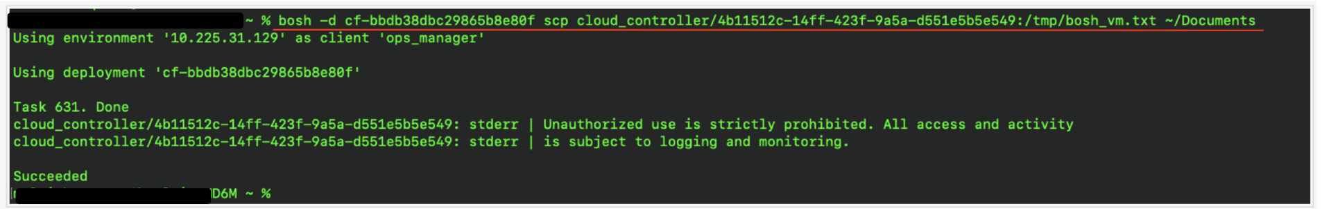bosh -d <deployment ID> scp <vm ID>:/tmp/<FILE_NAME> ~/Documents![]()