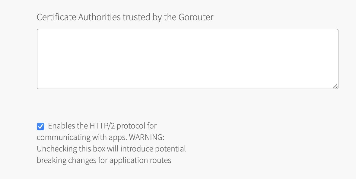 Ops Manager > VMware Tanzu Application Service tile > Networking > Enable the HTTP/2 protocol