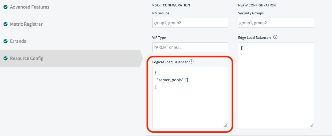 Based on the documents around how to configure an NSX-T load balancer for TAS as well as what changes are required on the Resource Config section of the TAS tile, you will find that the JSON payload required for adding server pool configurations in the resource config section of TAS tile is