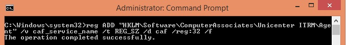 reg ADD "HKLM\Software\ComputerAssociates\Unicenter ITRM\Agent" /v caf_service_name /t REG_SZ /d caf /reg:32 /f