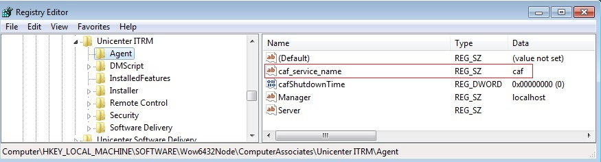 (or HKEY_LOCAL_MACHINE\SOFTWARE\Wow6432Node\ComputerAssociates\Unicenter ITRM\Agent