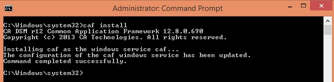 1- Execute the command "caf install" using the command prompt:
