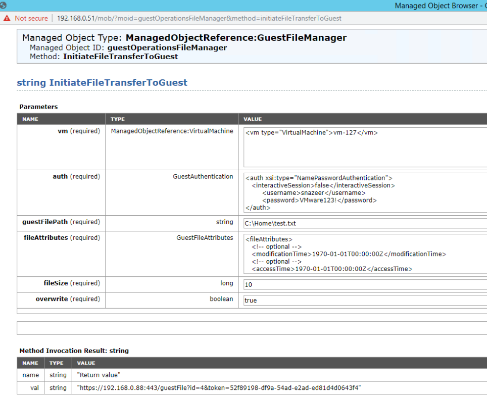 VMware vSphere InitiateFileTransferToGuest API behavior