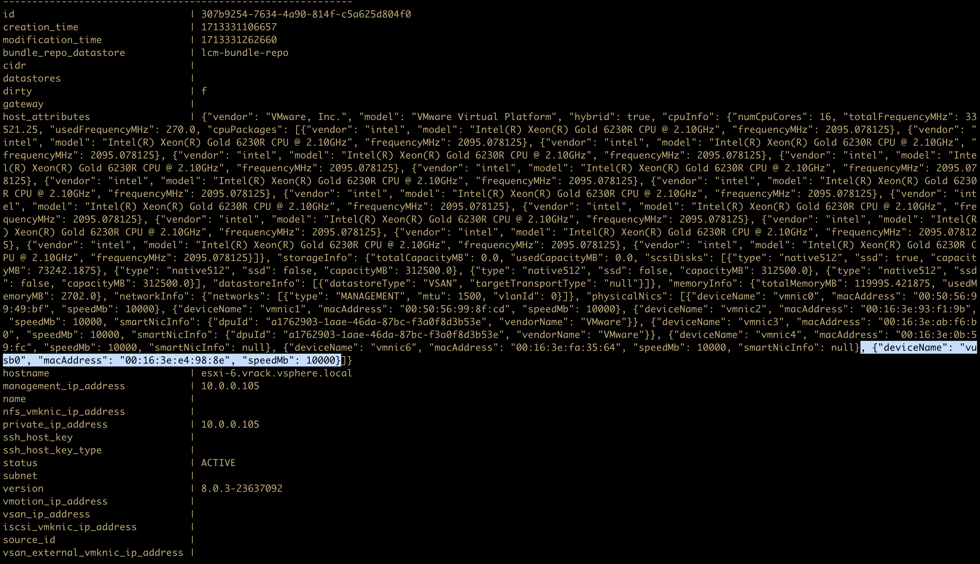 Copy the entire string and use it in command "update host set host_attributes='<modified-json-string>' where hostname='<host-fqdn>';" in the sql prompt of SDDC manager opened earlier.