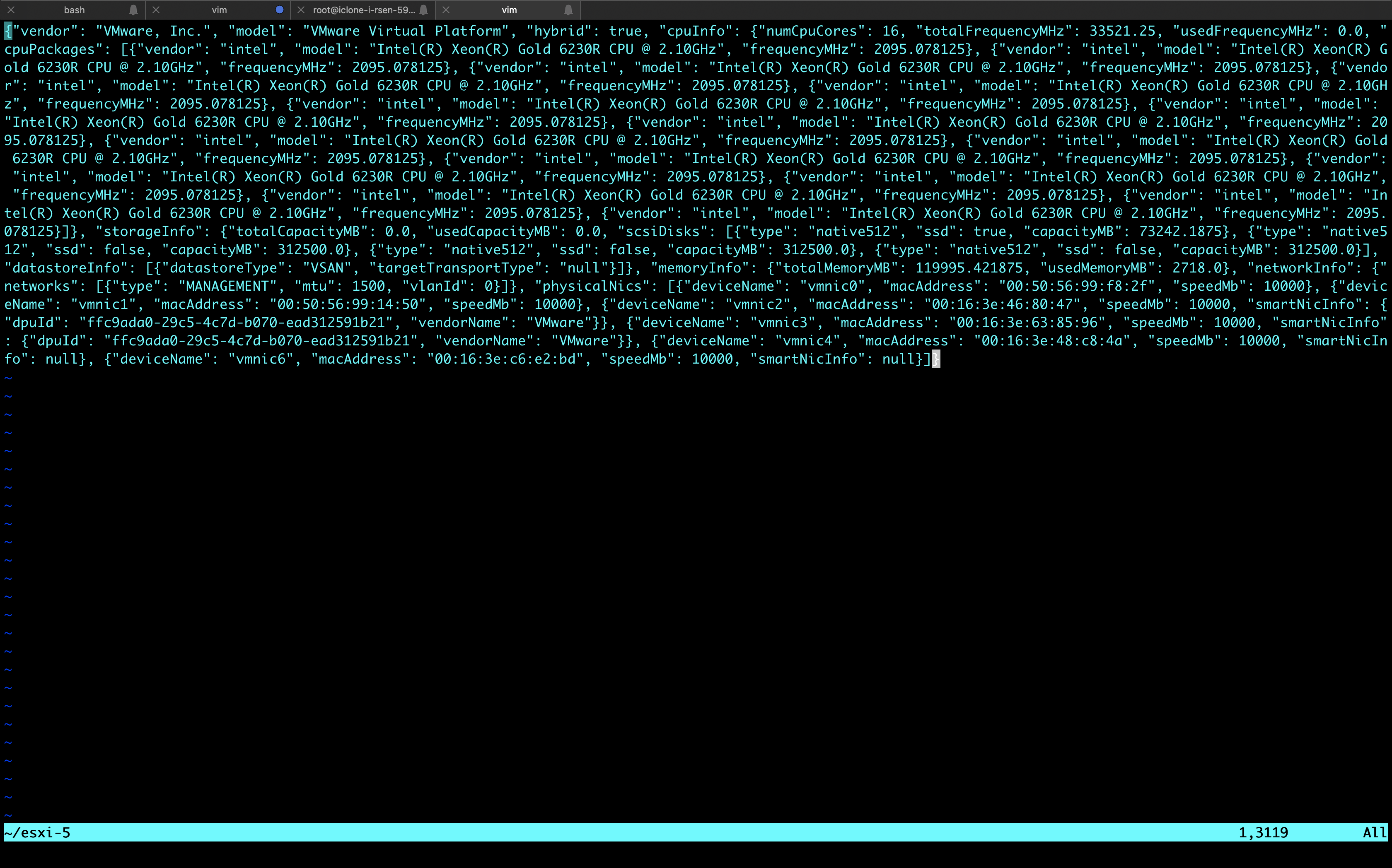 This will display the entire JSON string that represents the entire host attributes for this host. You now need to copy that entire string (including the opening and close angle brackets) into any temporary file.
