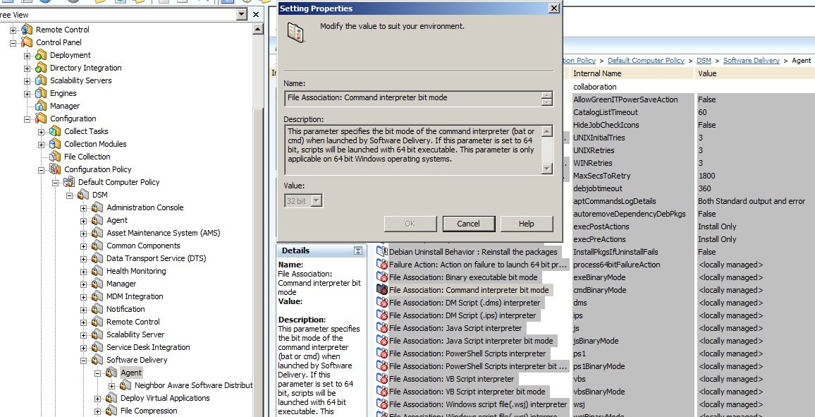 DSM/Software Delivery/Agent/File Association: Command interpreter bit mode :
