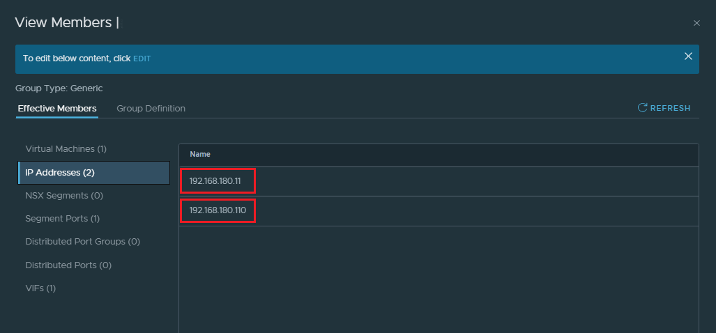When adding a virtual machine to Management/Compute groups the previously assigned IP address of the virtual machine is displayed in the inventory of the groups as a member.
