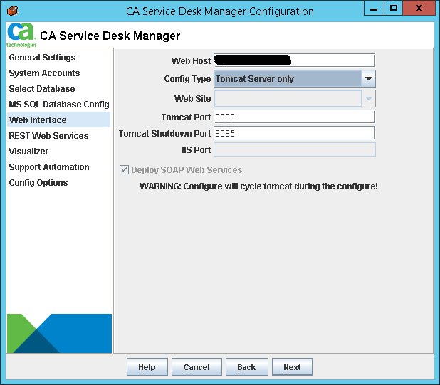 For example, in the following graphic, one can access the Config Type in pdm_configure, but only choose "Tomcat Server only" and none of the IIS options: