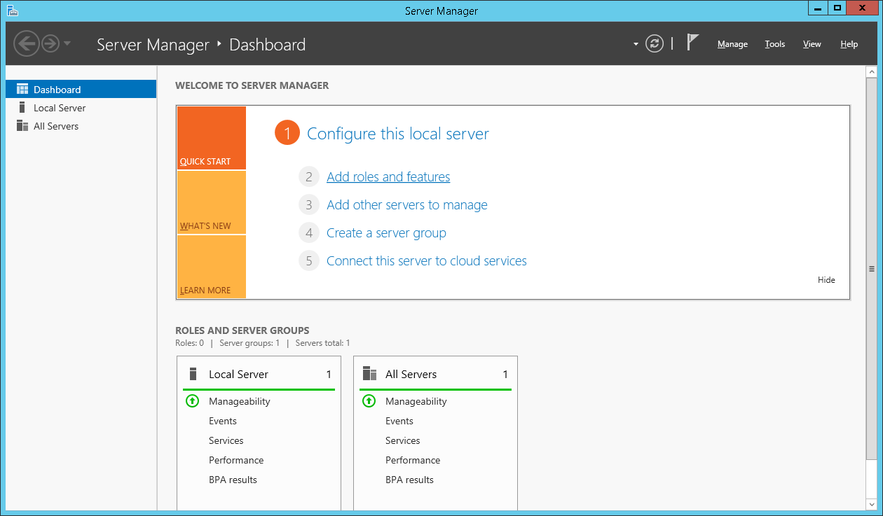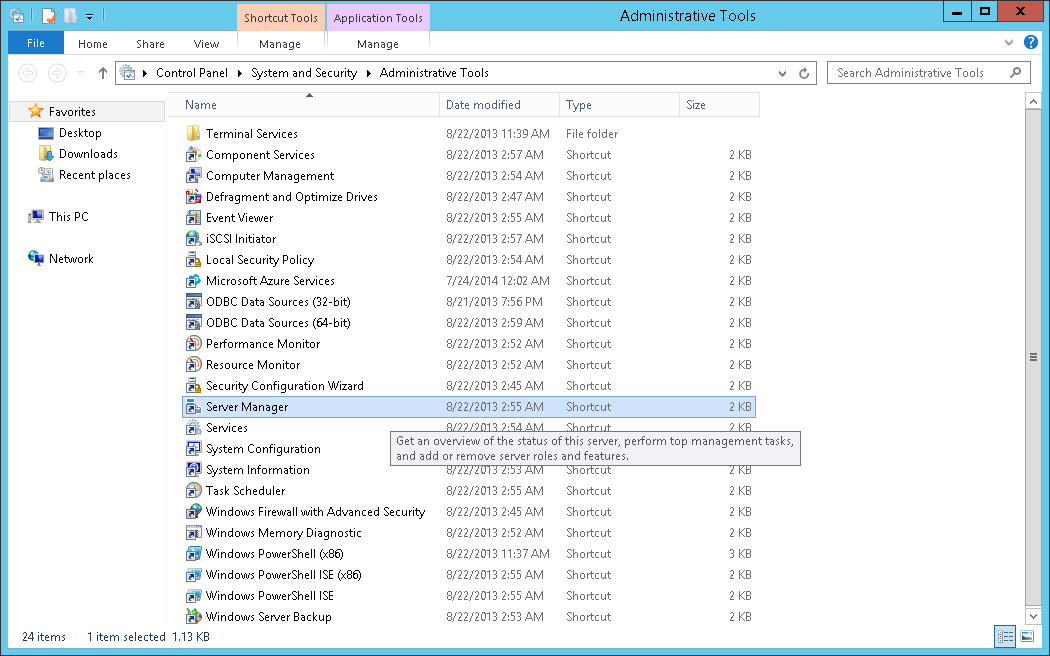 1. On the Windows 2012 Server, go into the Administrative Tools (Control Panel -> System and Security) and access "Server Manager"