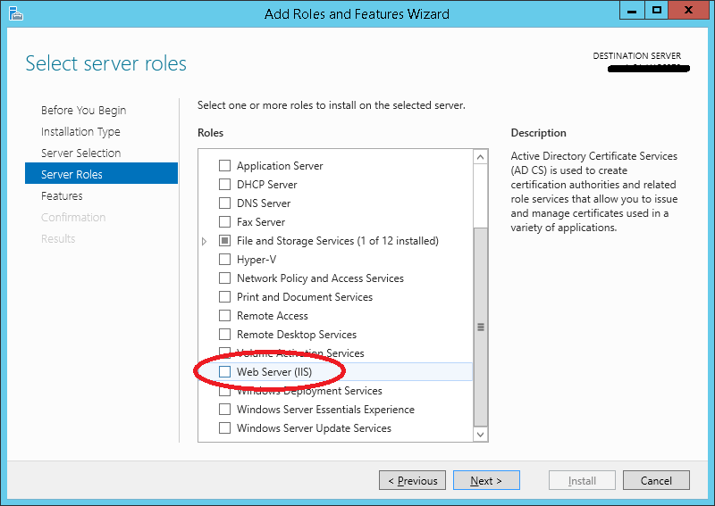 4. Once you reach "Server Roles", click on "Web Server (IIS)" and check it ON, then click Next.