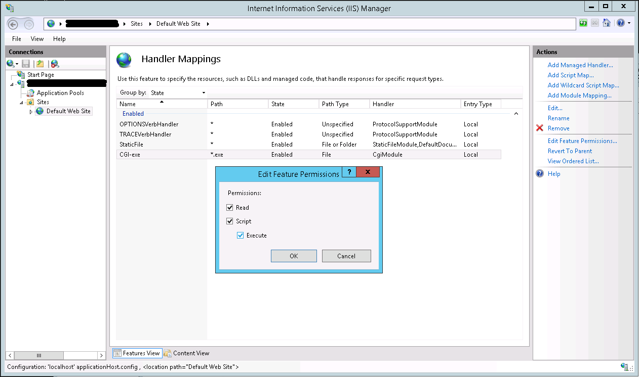 14. CGI-exe is disabled by default. Right click on CGI-exe and select "Edit Feature Permissions"