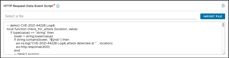 As another method to protect against CVE-2021-44228 we developed a DataScript that blocks the attack vectors.