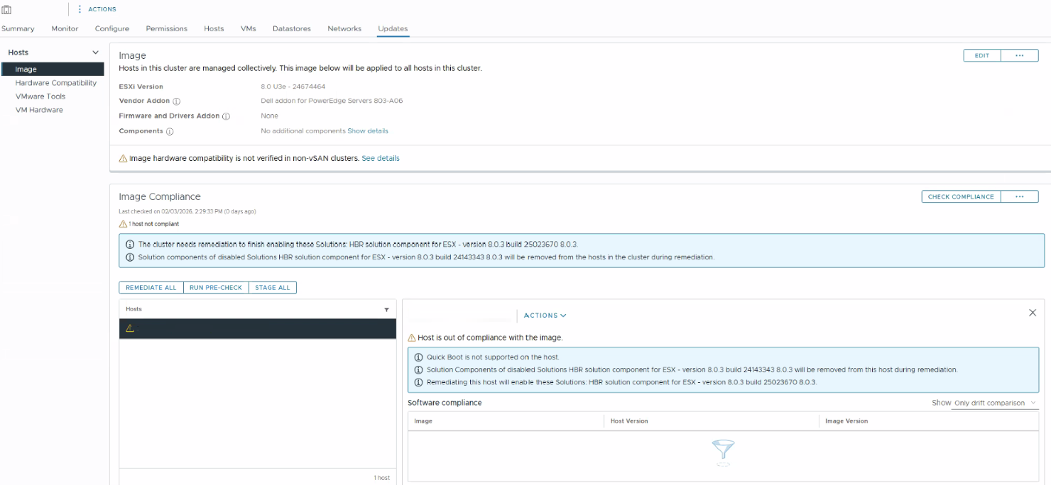 After the cluster image is made compliant and remediation is completed as outlined in the resolution steps, the HBR agent will be automatically deployed to the ESXi hosts via vSphere Lifecycle Manager (vLCM).