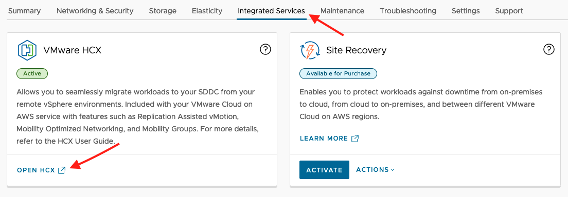 IMPORTANT: VMware HCX will always be highlighted as "Active" while clicking "Integrated Services" tab regardless of HCX Cloud Manager is deployed or undeployed.