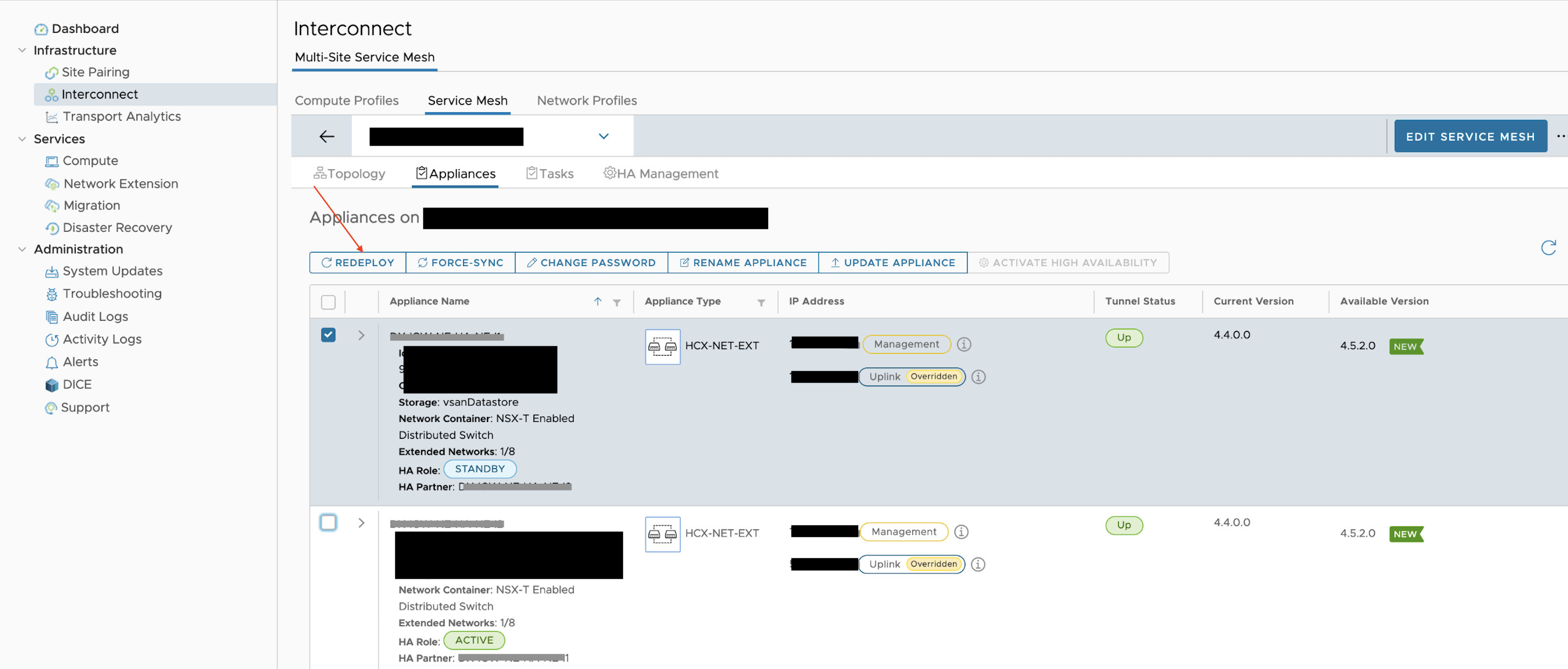 This resource is to inform about failure associated with HCX Service Mesh Fleet appliances configuration and how to recover that.