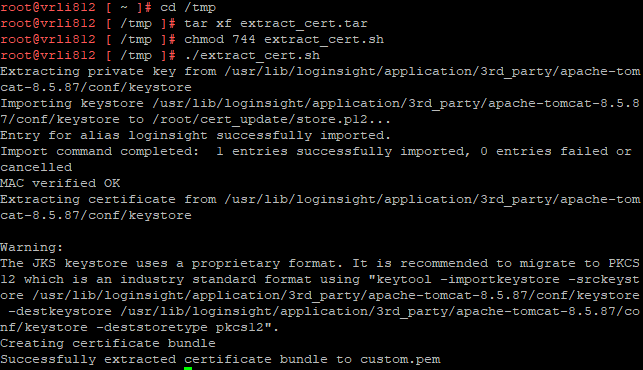 Note: The script will create custom.pem in the /tmp folder. You should see output similar to: