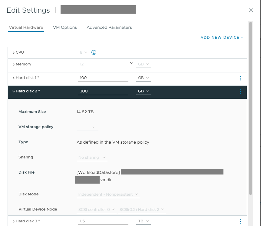 When viewing the VLCR Connector appliance configuration, the vmdk of the failed snapshot protected Virtual machine is mounted as an Hard disk.