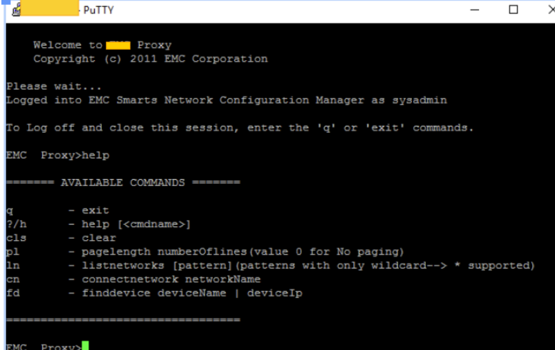 To connect to EMC Proxy tool, use below network commands: