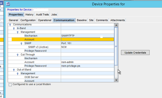 In this case, the Account and Privilege password are missing for these devices as can be seen in the Properties->Communication tab of the device: