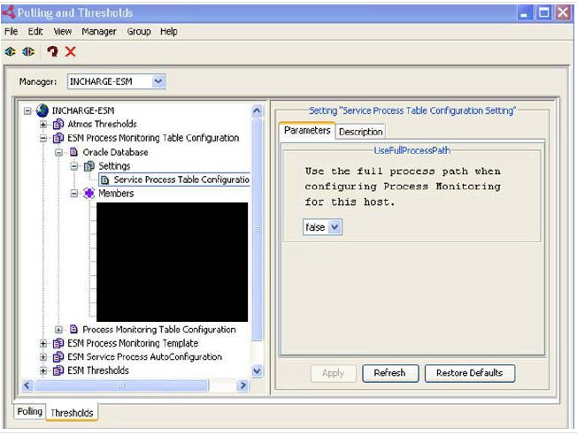 In Smarts Server Manager 9.2 and later, you can configure different setting groups with different matching criteria in the Smarts Polling and Thresholds console to use the full application command path for the Process Configuration of certain hosts. Once the association of the group is done based on the matching criteria, all the hosts in that group are configured using the process name or process full path, depending on the setting in Polling and Thresholds > Thresholds dialog.