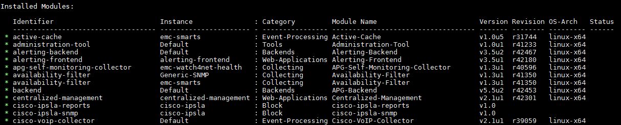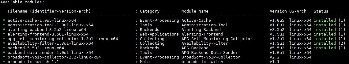 <APG_BASE>/bin directory. ./manage-modules.sh list