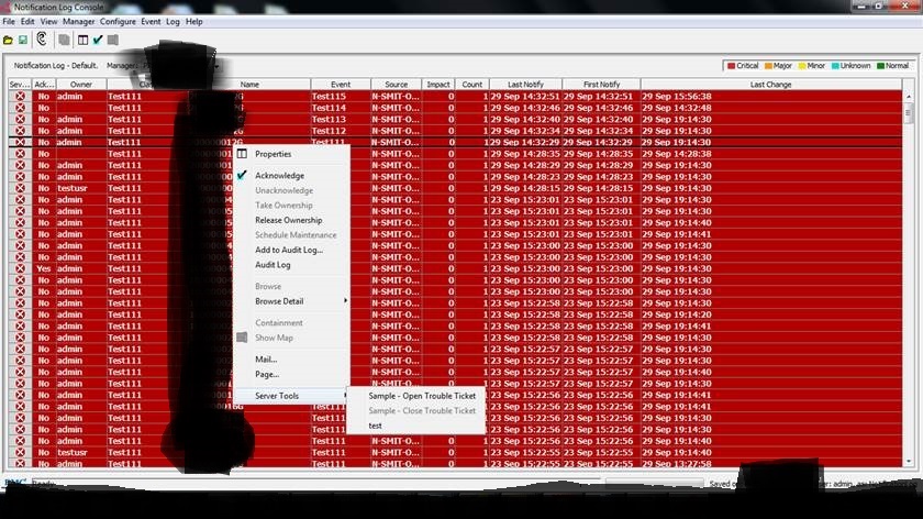 When clicking on a notification from the SAM Console in Watch4net GUI The option to use The Server tool is greyed out: