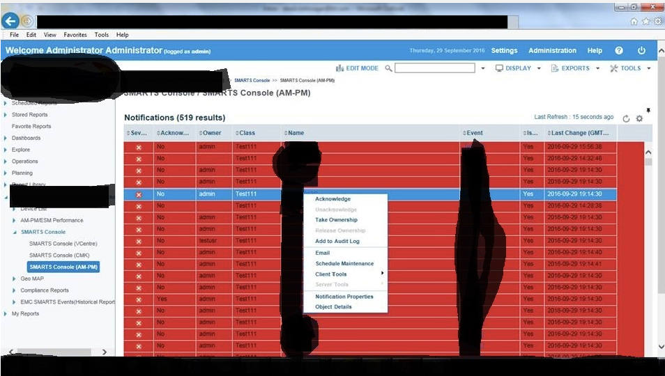 The Notifications on the MnR Console are based on the feeds which had the FQDN of the Presentation SAM - "**************" for the smarts-edaa