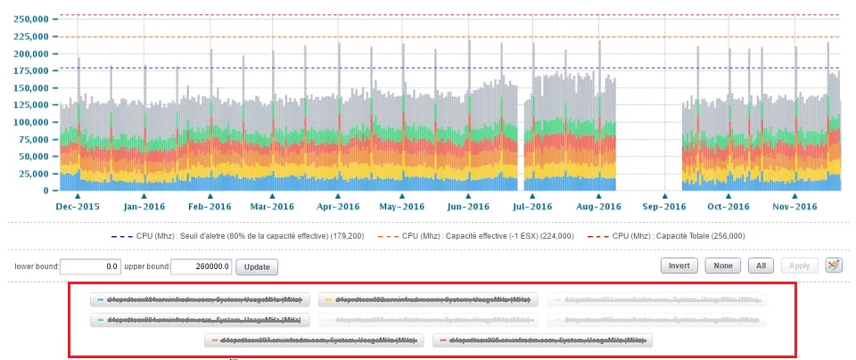 In MnR, when a stacked bars report is created, by default, only the 5 metrics out of 5+n are selected and shown. All of the others need to be selected in the user interface and clicks apply to show.