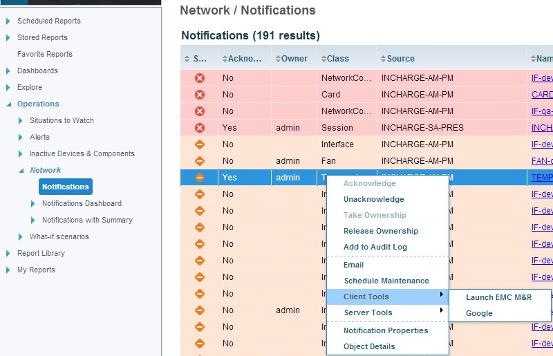 - The example text below shows the default "Launch EMC M&R" option and the Google option which has been added: