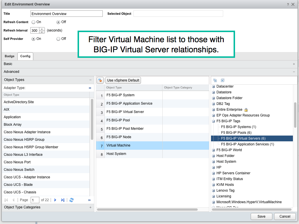 Highlight F5 BIG-IP Virtual Servers (or an alternate) and click save.