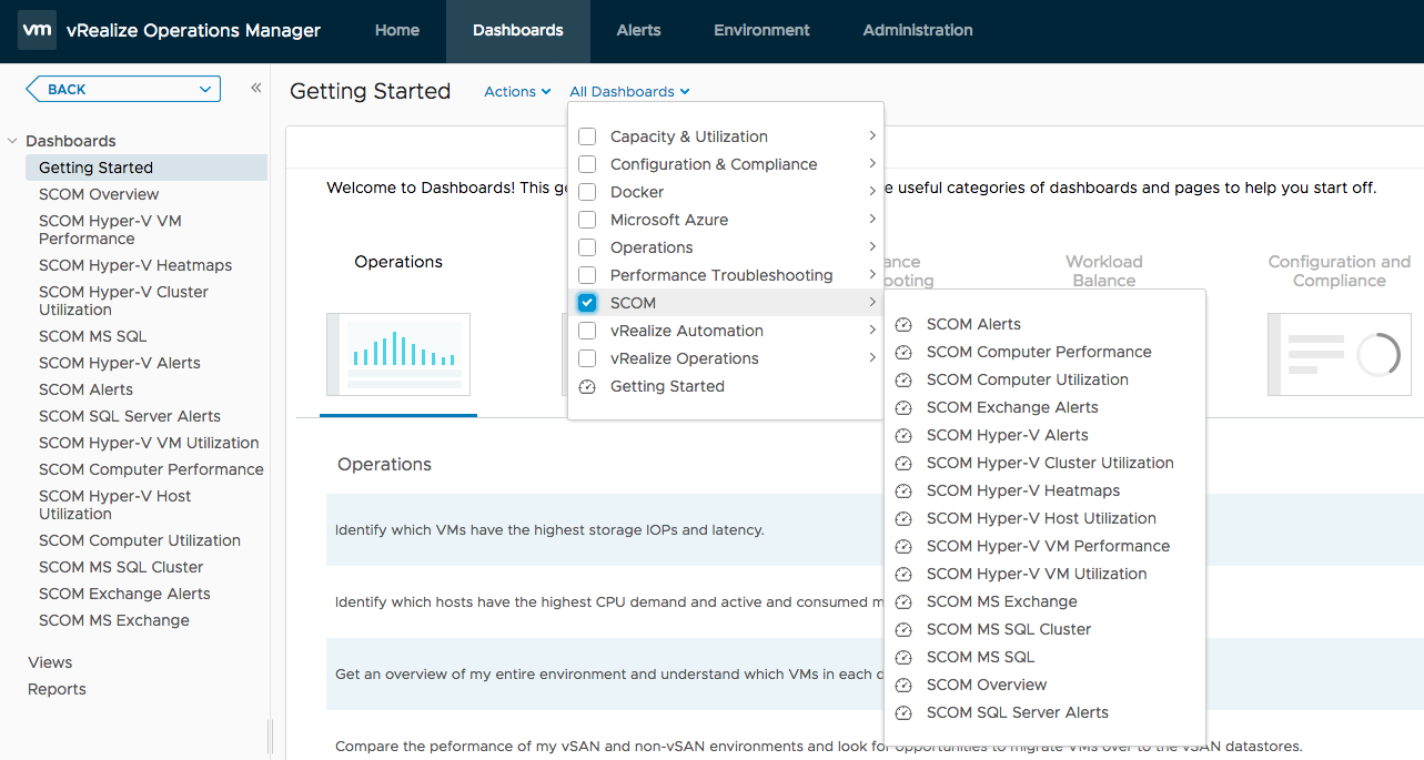 14. Afterwards, if you select All Dashboards and check SCOM, you should see both dashboards included.