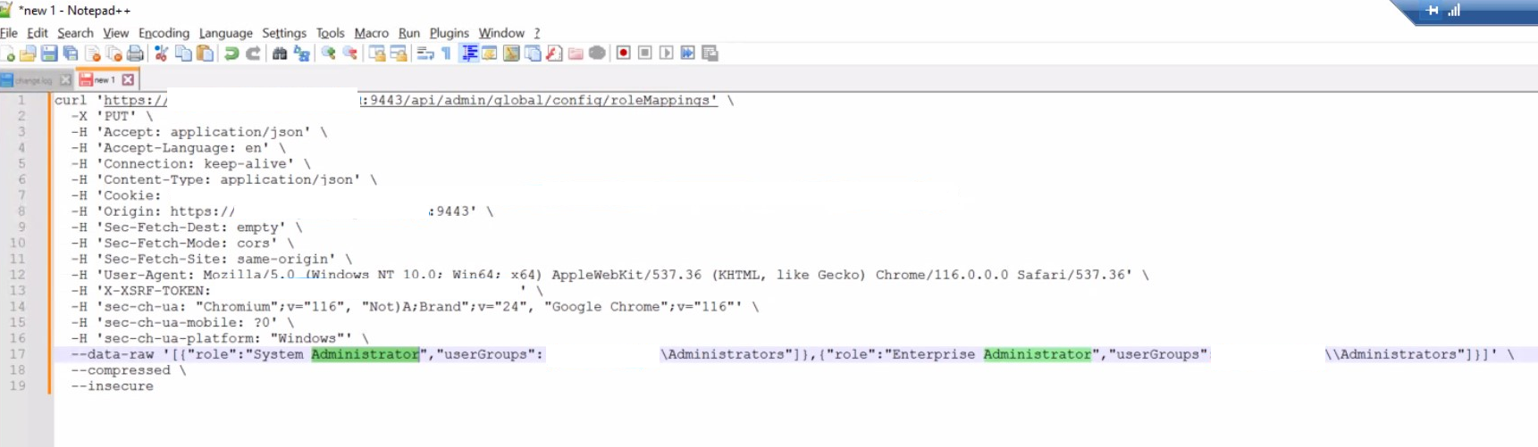Paste the content into a text editor and make sure that the groups under the "System Administrator" and the "Enterprise Administrator" sections match.