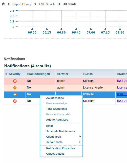 Smarts notifications are collected through the mashupengine using the Alerts EDAA from Smarts. The actions on the report are provided through the data in JSON format returned from the Alerts EDAA. Because the topology configuration before enabling SSL is kept, the action will be directed to the HTTP address and not the new HTTPS secure address. This can occur when using the existing repository for the presentation SAM domain and enabling SSL at a later date.