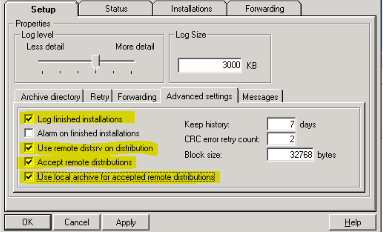 Note that you would also select the "Use remote distsrv on distribution" if you have other hubs that are down stream from these which have a distsrv probe installed.